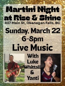 Rise & Shine is hosting a Martini Night Sunday March 22nd 6-8pm. Join us for jazzy tunes, scrumptious beverages and delicious cuisine. Musicians of the night, Luke Whittall and Yanti