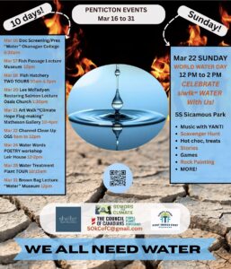 Sunday March 22 is the day for celebrating WATER 12pm – 2pm at S.S. Sicamous Park.